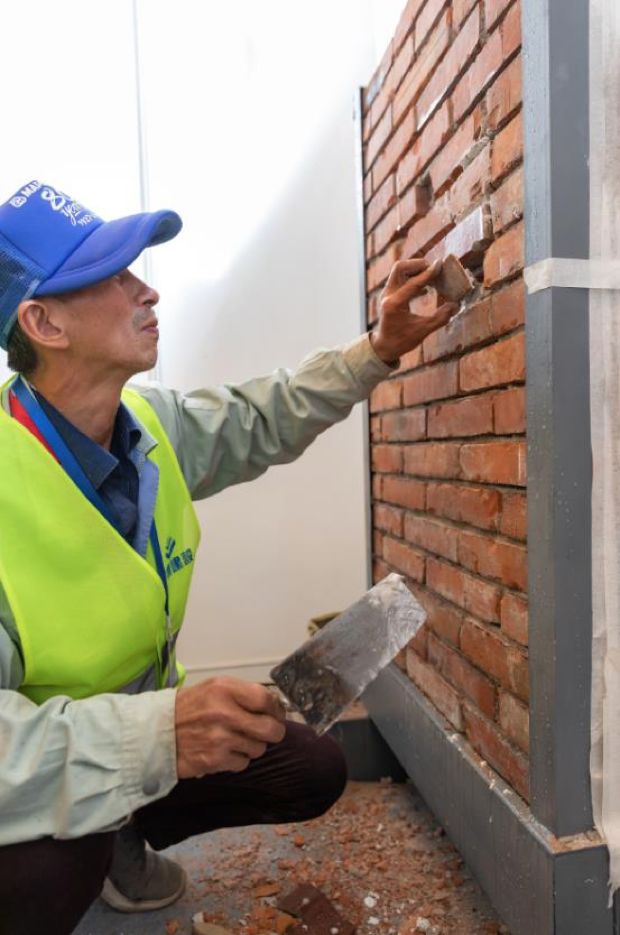△ 墙面的清理,不得使用钢刷和泥铲,以免对原清水砖墙产生破坏
