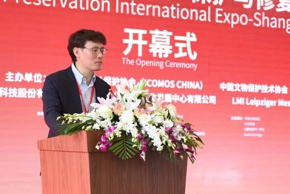 最后,中国文化遗产研究院院长、中国古迹遗址保护协会副理事长柴晓明致辞并宣布展会开幕。柴院长说,本次会议参会成员更加广泛,研讨议题更加贴近时代,既有关于文物保护理念、技术的研讨,也有关于遗产活化利用、文化旅游的探索;参展单位既有拥有悠久传统的文博科研单位、高等院校,也有来自海内外的开拓文物保护新技术的企业。通过参观展览、参加研讨,相信大家将体验到不断进步发展的不可移动文物保护领域全产业供应链,与代表业界先进水平及未来发展方向的产业供应商交流合作,实现资源与经验的共享。